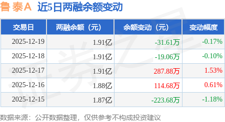证券之星消息,12月19日,鲁 泰A(000726)融资买入711.14万元,融资偿还742.75万元,融资净卖出31.61万元,融资余额1.91亿元。