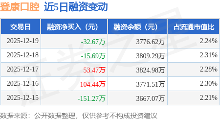 证券之星消息,12月19日,登康口腔(001328)融资买入464.06万元,融资偿还496.73万元,融资净卖出32.67万元,融资余额3776.62万元。