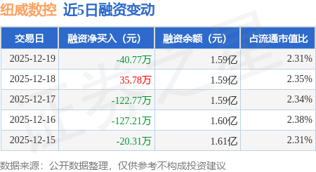 证券之星消息,12月19日,纽威数控(688697)融资买入381.14万元,融资偿还421.9万元,融资净卖出40.77万元,融资余额1.59亿元。