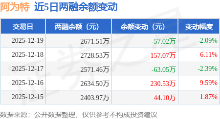 证券之星消息,12月19日,阿为特(920693)融资买入214.51万元,融资偿还271.53万元,融资净卖出57.02万元,融资余额2671.51万元。