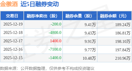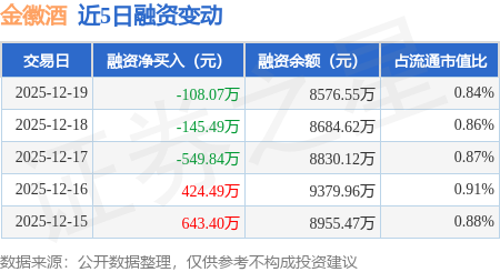 证券之星消息,12月19日,金徽酒(603919)融资买入464.86万元,融资偿还572.94万元,融资净卖出108.07万元,融资余额8576.55万元。