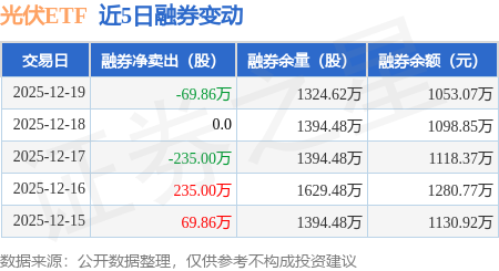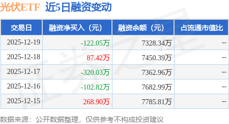 证券之星消息,12月19日,光伏ETF(159857)融资买入412.16万元,融资偿还534.21万元,融资净卖出122.05万元,融资余额7328.34万元。
