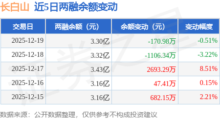 证券之星消息,12月19日,长白山(603099)融资买入3473.35万元,融资偿还3669.67万元,融资净卖出196.32万元,融资余额3.3亿元。