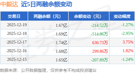 证券之星消息,12月19日,中毅达(600610)融资买入723.63万元,融资偿还938.37万元,融资净卖出214.74万元,融资余额1.66亿元。