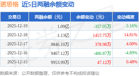 证券之星消息,12月19日,诺思格(301333)融资买入1312.2万元,融资偿还1670.27万元,融资净卖出358.06万元,融资余额1.09亿元,近20个交易日中有11个交易日出现融资净买入。