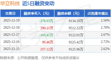 证券之星消息,12月19日,华立科技(301011)融资买入1455.6万元,融资偿还1833.63万元,融资净卖出378.03万元,融资余额9134.19万元。