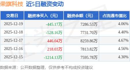 证券之星消息,12月19日,荣旗科技(301360)融资买入403.42万元,融资偿还848.59万元,融资净卖出445.17万元,融资余额7286.53万元。