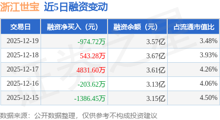证券之星消息,12月19日,浙江世宝(002703)融资买入1.21亿元,融资偿还1.31亿元,融资净卖出974.72万元,融资余额3.57亿元。