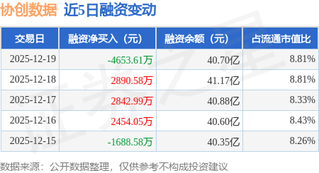 证券之星消息,12月19日,协创数据(300857)融资买入9548.89万元,融资偿还1.42亿元,融资净卖出4653.61万元,融资余额40.7亿元,近20个交易日中有12个交易日出现融资净买入。