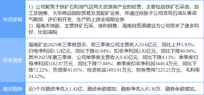证券之星消息,海南矿业12月22日涨停收盘,收盘价11.47元。该股于10点5分涨停,5次打开涨停,截止收盘封单资金为5351.56万元,占其流通市值0.24%。