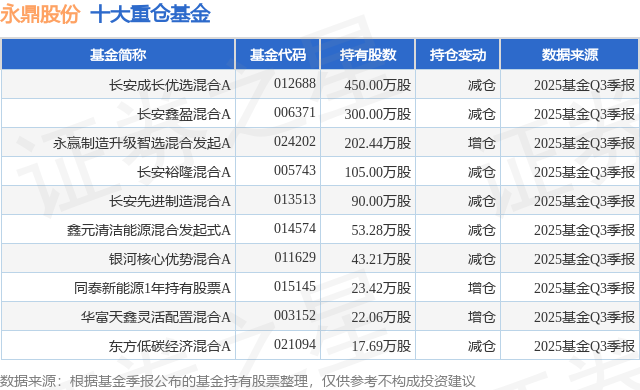 根据2025基金Q3季报公募基金重仓股数据,重仓该股的公募基金共15家,其中持有数量最多的公募基金为长安基金的长安成长优选混合A。长安成长优选混合A目前规模为11.12亿元,最新净值0.7085(12月19日),较上一交易日上涨0.2%,近一年上涨26.97%。该公募基金现任基金经理为徐小勇。徐小勇在任的基金产品包括:长安裕隆混合A,管理时间为2018年9月7日至今,期间收益率为179.23%;长安鑫盈混合A,管理时间为2019年7月18日至今,期间收益率为86.84%;长安先进制造混合A,管理时间为2021年10月28日至今,期间收益率为-22.37%。