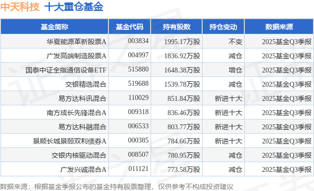 重仓中天科技的前十大公募基金请见下表: