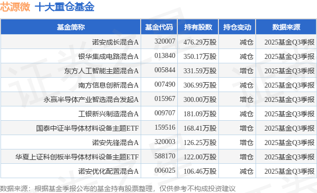 根据2025基金Q3季报公募基金重仓股数据,重仓该股的公募基金共119家,其中持有数量最多的公募基金为诺安基金的诺安成长混合A。诺安成长混合A目前规模为184.68亿元,最新净值1.832(12月19日),较上一交易日上涨0.11%,近一年上涨28.92%。该公募基金现任基金经理为刘慧影。刘慧影在任的基金产品包括:诺安优化配置混合A,管理时间为2022年8月3日至今,期间收益率为64.3%;诺安积极回报混合A,管理时间为2023年9月29日至今,期间收益率为11.29%。