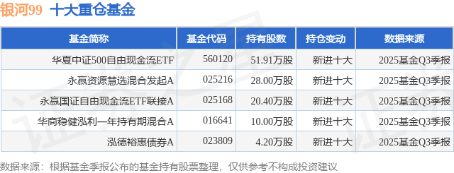 根据2025基金Q3季报公募基金重仓股数据,重仓该股的公募基金共5家,其中持有数量最多的公募基金为华夏基金的华夏中证500自由现金流ETF。华夏中证500自由现金流ETF目前规模为0.56亿元,最新净值1.2009(12月19日),较上一交易日上涨1.6%。该公募基金现任基金经理为杨斯琪。杨斯琪在任的基金产品包括:华夏中证红利低波动ETF,管理时间为2024年6月11日至今,期间收益率为10.25%;华夏中证红利低波动ETF发起式联接A,管理时间为2024年7月2日至今,期间收益率为10.29%;华夏中证全指运输ETF发起式联接A,管理时间为2024年11月7日至今,期间收益率为2.34%;华夏中证全指运输ETF,管理时间为2024年11月7日至今,期间收益率为2.55%。