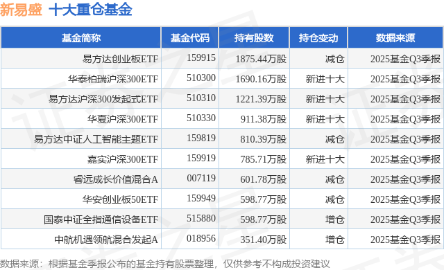 重仓新易盛的前十大公募基金请见下表: