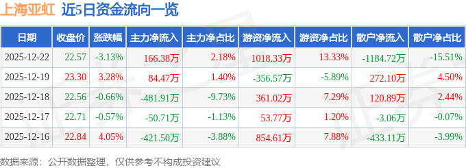 12月22日的资金流向数据方面,主力资金净流入166.38万元,占总成交额2.18%,游资资金净流入1018.33万元,占总成交额13.33%,散户资金净流出1184.72万元,占总成交额15.51%。