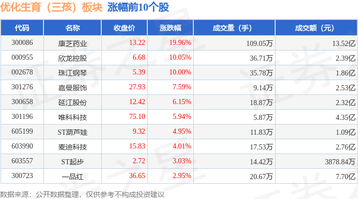 从资金流向上来看,当日优化生育(三孩)板块主力资金净流出6.35亿元,游资资金净流入8549.6万元,散户资金净流入5.5亿元。优化生育(三孩)板块个股资金流向见下表: