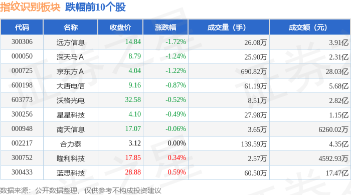 从资金流向上来看,当日指纹识别板块主力资金净流出8.4亿元,游资资金净流入1.71亿元,散户资金净流入6.69亿元。指纹识别板块个股资金流向见下表: