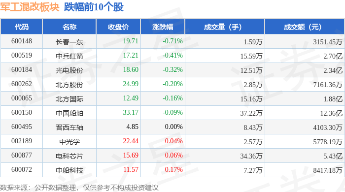 证券之星消息,12月22日军工混改板块较上一交易日上涨0.63%,北方导航领涨。当日上证指数报收于3917.36,上涨0.69%。深证成指报收于13332.73,上涨1.47%。军工混改板块个股涨跌见下表: