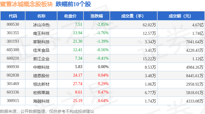 从资金流向上来看,当日蜜雪冰城概念股板块主力资金净流出5224.24万元,游资资金净流出2204.92万元,散户资金净流入7429.15万元。蜜雪冰城概念股板块个股资金流向见下表: