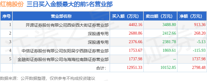 证券之星消息,沪深交易所2025年12月22日公布的交易公开信息显示,红棉股份(000523)因连续三个交易日内,涨幅偏离值累计达到20%的证券登上龙虎榜。此次是近5个交易日内第1次上榜。