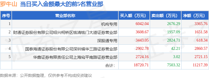 从龙虎榜公布的当日买卖数据来看,机构合计净买入3365.76万元,北向资金合计净买入618.34万元。炒股养家、章盟主等知名游资榜上有名。(知名游资炒股养家一般指华鑫证券有限责任公司上海宛平南路证券营业部席位、知名游资章盟主一般指国泰海通证券股份有限公司上海长宁区江苏路证券营业部席位,根据市场资料整理,仅供参考)