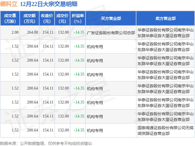 证券之星消息,12月22日德科立发生大宗交易,交易数据如下: