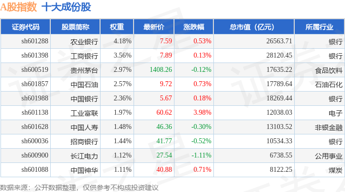 A股指数(000002)十大成份股详情如下: