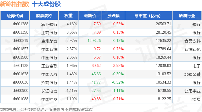 新综指(000017)指数十大成份股详情如下:
