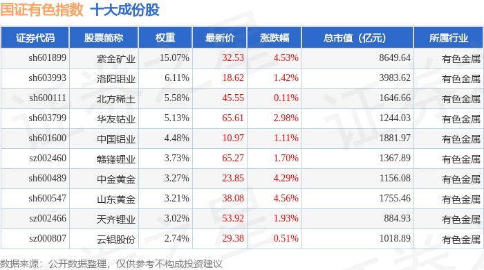 资金流向方面,国证有色(399395)指数成份股当日主力资金净流入合计18.36亿元,游资资金净流出合计10.24亿元,散户资金净流出合计8.11亿元。成份股资金流向详情见下表: