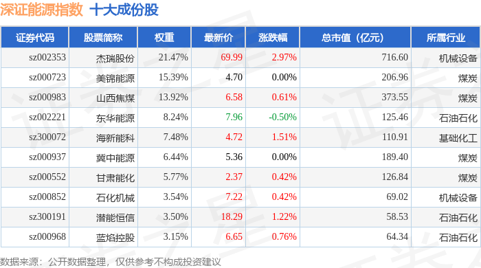 深证能源(399613)指数十大成份股详情如下: