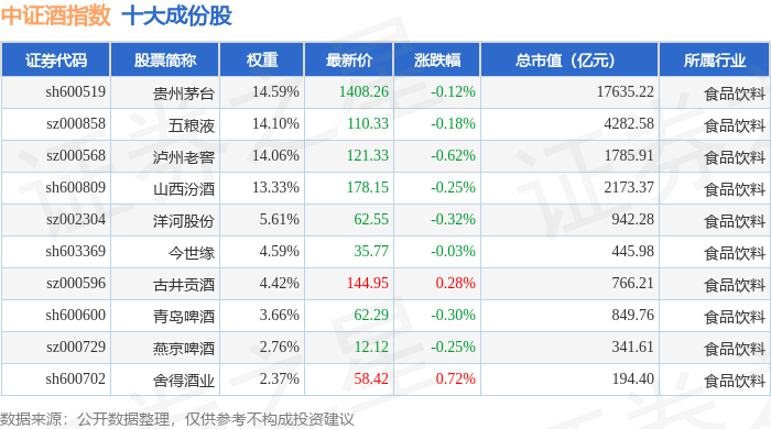 近10日内中证酒(399987)指数成份股做了调整,剔除了1只股票。