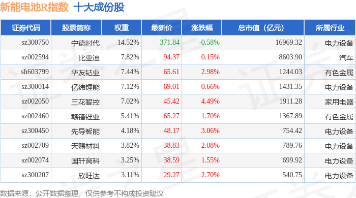 近10日内新能电池R(480032)指数成份股做了调整,新纳入了2只股票,剔除了2只股票。