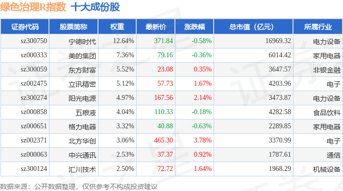 资金流向方面,绿色治理R(480058)指数成份股当日主力资金净流出合计16.46亿元,游资资金净流入合计7.4亿元,散户资金净流入合计9.06亿元。成份股资金流向详情见下表: