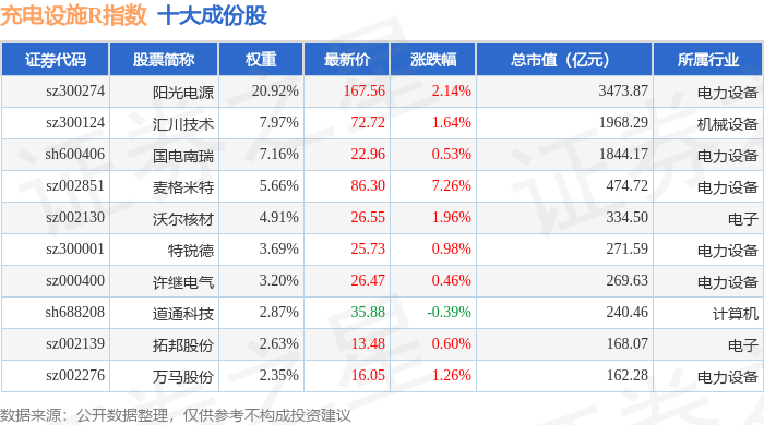近10日内充电设施R(480077)指数成份股做了调整,新纳入了5只股票,剔除了6只股票。