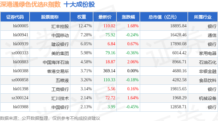 深港通绿色优选R(483011)指数十大成份股详情如下: