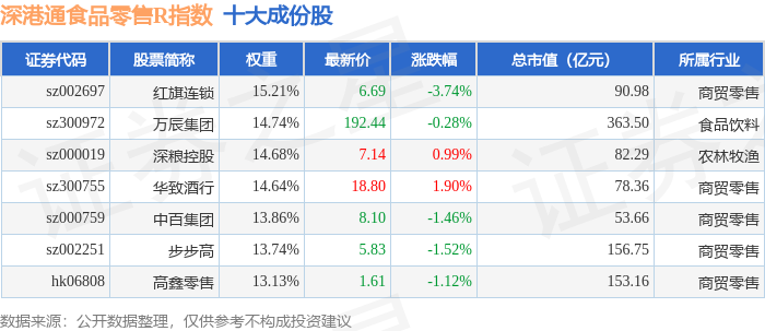 深港通食品零售R(483037)指数十大成份股详情如下: