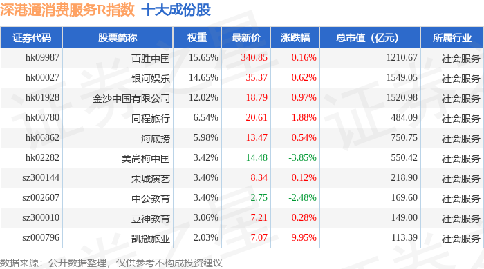 深港通消费服务R(483045)指数十大成份股详情如下: