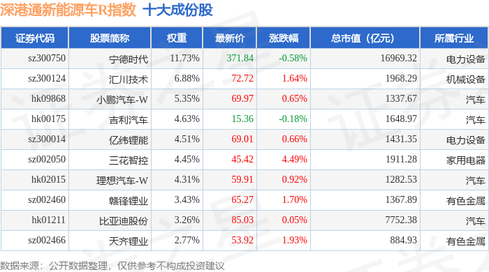 深港通新能源车R(483087)指数十大成份股详情如下: