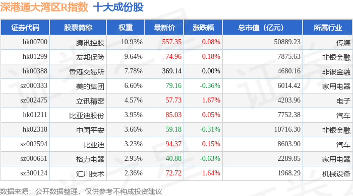 深港通大湾区R(483089)指数十大成份股详情如下: