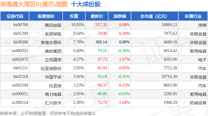 深港通大湾区R(港币)(483090)指数十大成份股详情如下: