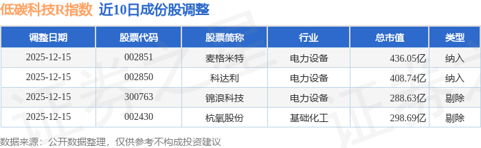 近10日内低碳科技R(483160)指数成份股做了调整,新纳入了2只股票,剔除了2只股票。