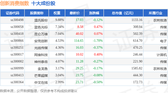 近10日内创新消费(970041)指数成份股做了调整,新纳入了3只股票,剔除了3只股票。