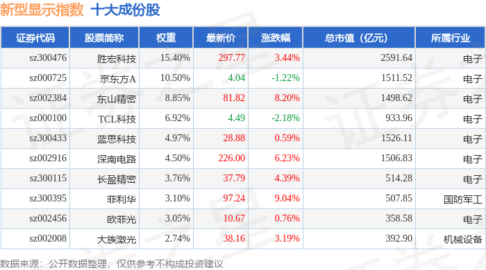 近10日内新型显示(970048)指数成份股做了调整,新纳入了5只股票,剔除了5只股票。
