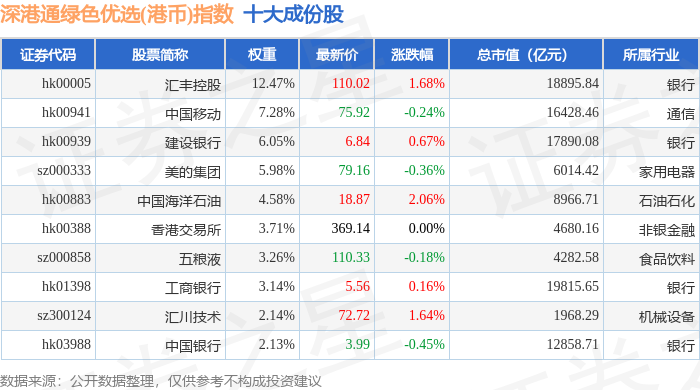 深港通绿色优选(港币)(983012)指数十大成份股详情如下: