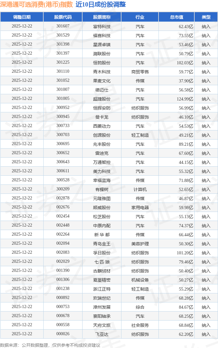 近10日内深港通可选消费(港币)(983020)指数成份股做了调整,新纳入了35只股票。