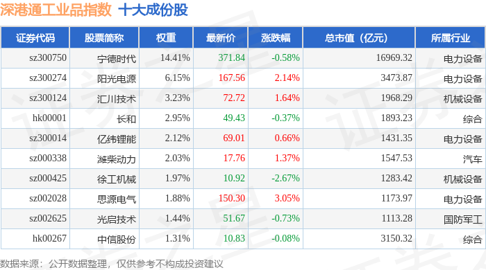 深港通工业品(983069)指数十大成份股详情如下: