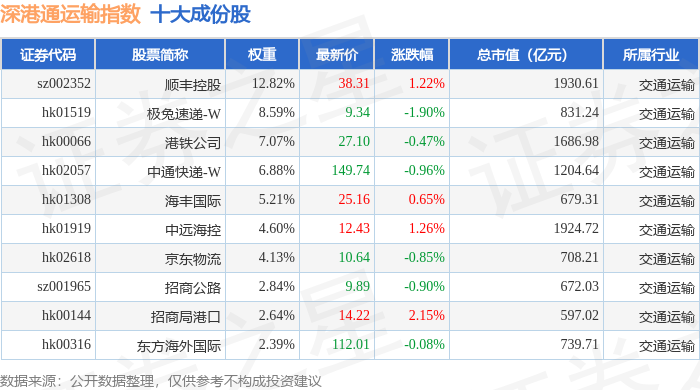 近10日内深港通运输(983077)指数成份股做了调整,新纳入了2只股票。