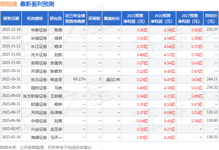最新盈利预测明细如下: