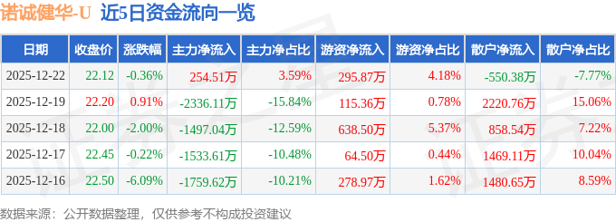 证券之星消息,截至2025年12月22日收盘,诺诚健华(688428)报收于22.12元,下跌0.36%,换手率1.19%,成交量3.19万手,成交额7083.53万元。